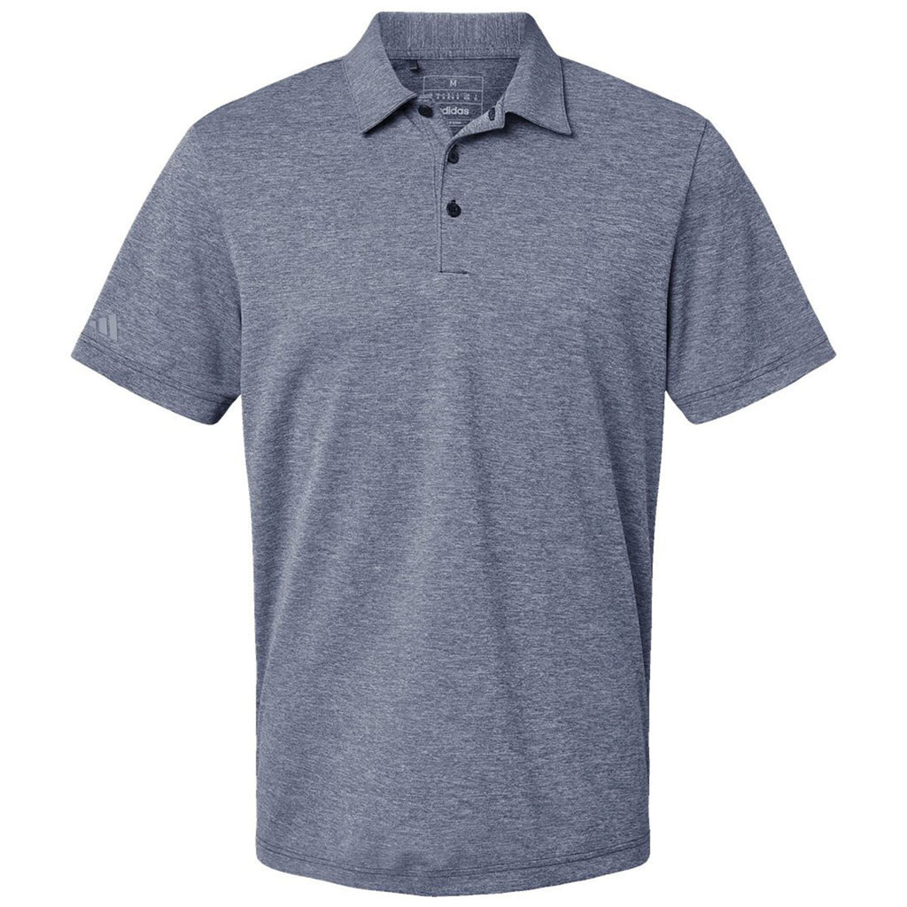 Choose embroidery for the Adidas Men's Collegiate Navy Melange Heathered Polo for a classic yet softer look with impressive heathered coloring. Made of recycled polyester, this polo is great for golf, trade shows, or general day-to-day wear. Give as a gift or share as part of your custom, logoed apparel line.This product cannot ship outside of the United States