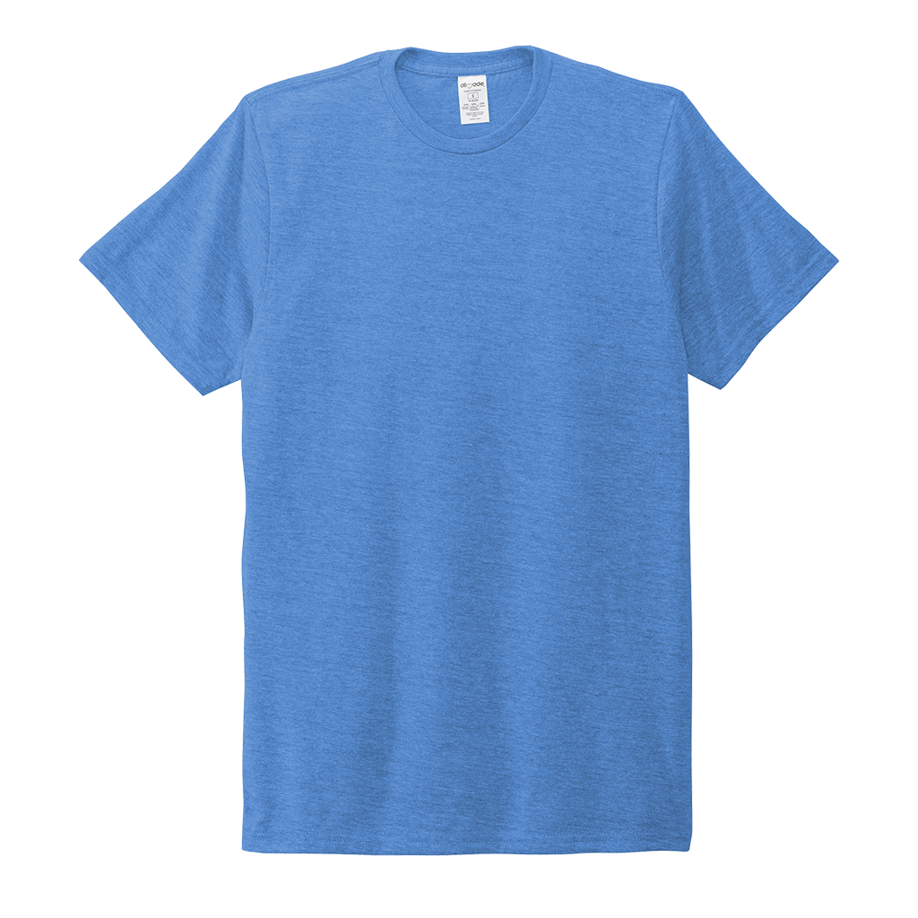 Screen print will pop on the Allmade Unisex Azure Blue Tri-Blend Tee with your choice of design and location. This sustainable clothing is a must have for most wardrobes because it is both eco-friendly and comfortable. Easy to wear alone or layer as needed, this recycled apparel is made from sustainable materials that are the equivalent of up to six recycled plastic water bottles. With a rib knit collar, side seams, and tear away label, this tee can go from a morning run to a day spent with families and home again with ease. Made for durability, this tee will make your custom logo stand out whether used as a custom gift or employee apparel.