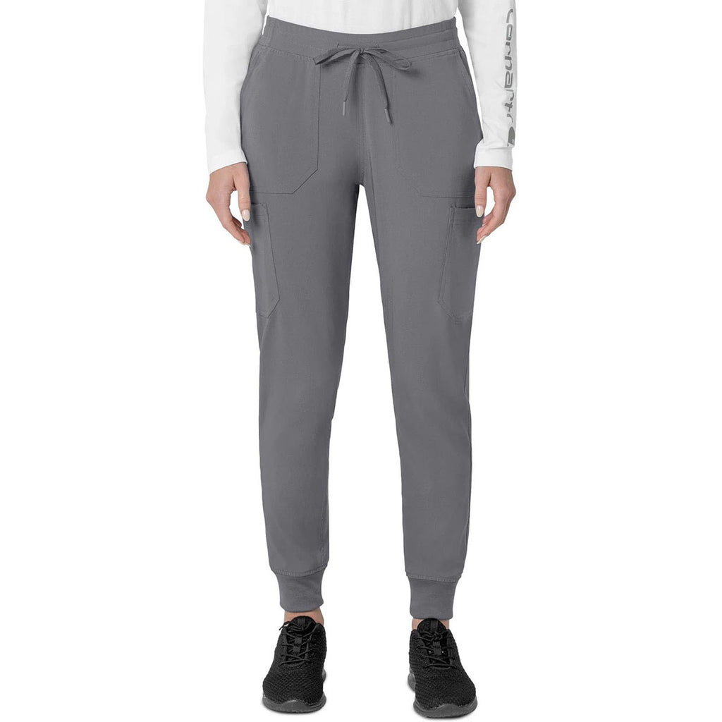 Add embroidery to the Carhartt Women's Pewter Eight-Pocket Cargo Pant for an easy-to-wear look that is ready for whatever is on your schedule. The elastic waistband with drawstring creates an adjustable fit, and two deep slash pockets with multiple other pockets keep you and your necessities organized. Get active or go to work, this pant will deliver.Highlights