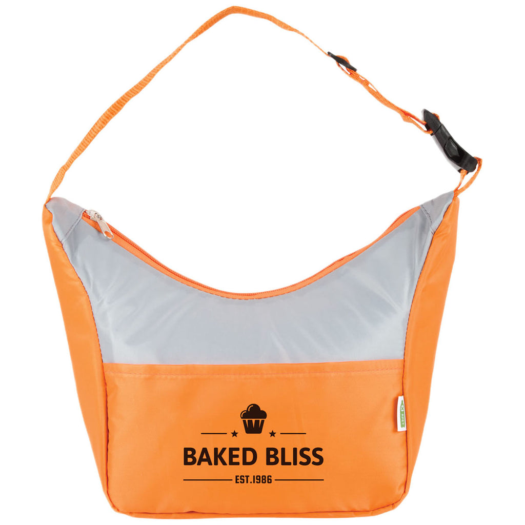 Keep your logo in sight with the corporate Logomark Orange Roni 6-Can RPET Lunch Cooler, made from recycled plastic bottles. This eco-forward cooler features a zippered main compartment, shoulder strap, and side mesh pocket. It's an excellent option for schools, job sites, or green initiatives that want a practical, everyday product with visible sustainability.