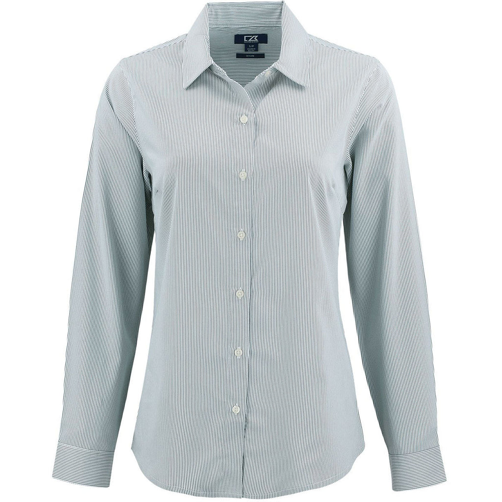 Cutter & Buck Women's Hunter/White Skyline Epic Confidence Recycled Pinstripe Long Sleeve Dress Shirt