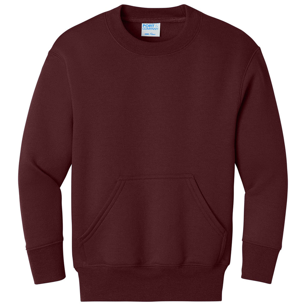 Port & Company Youth Maroon Core Fleece Crewneck Pocket Sweatshirt