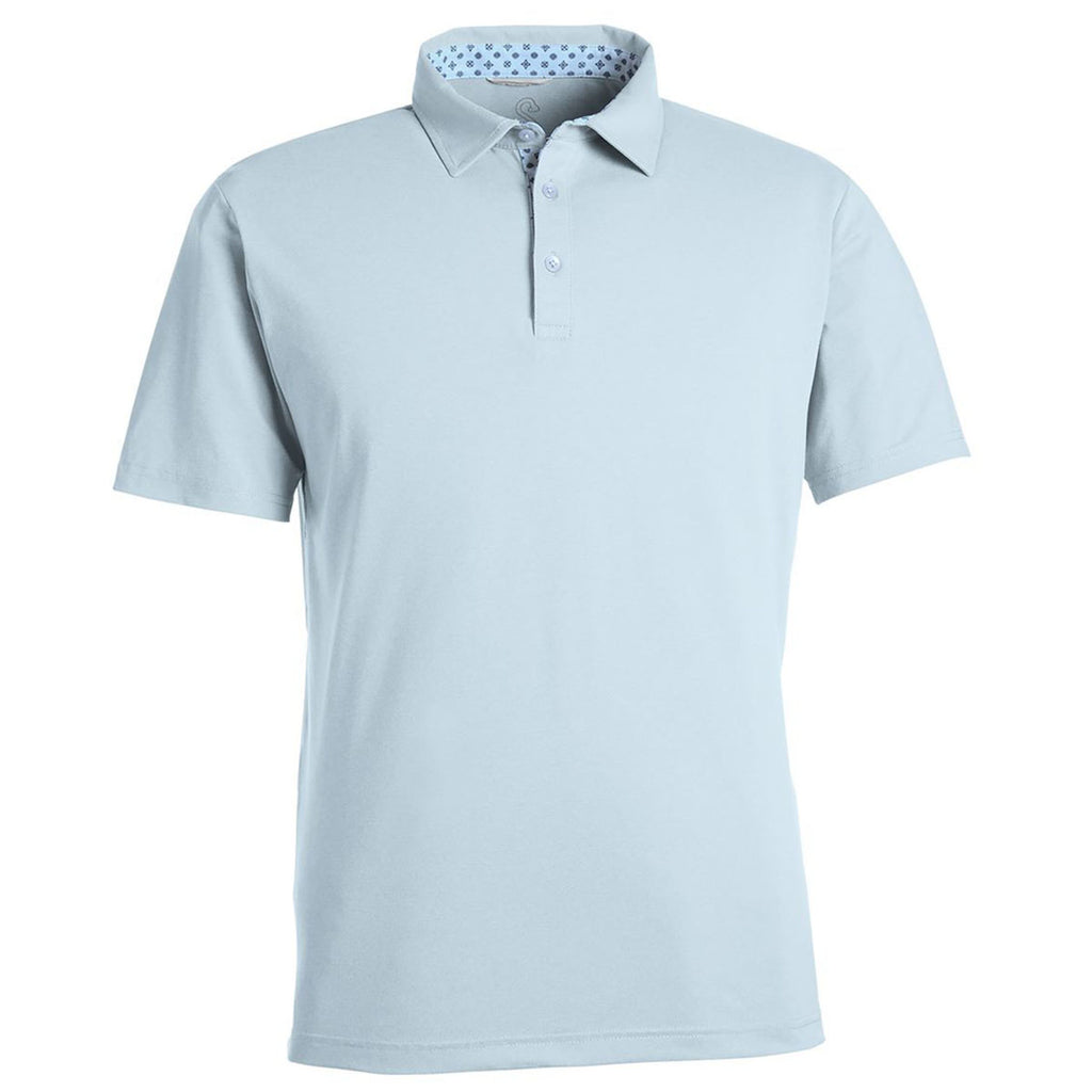 Smart, breathable, and designed for movement, the Swannies Men's Sky Heather James H Polo combines moisture-wicking performance with clean, modern lines. A subtle pattern and comfortable stretch fabric make it ideal for office and active settings. Add your custom logo for corporate golf outings, upscale teamwear, or everyday professional branding.Highlights