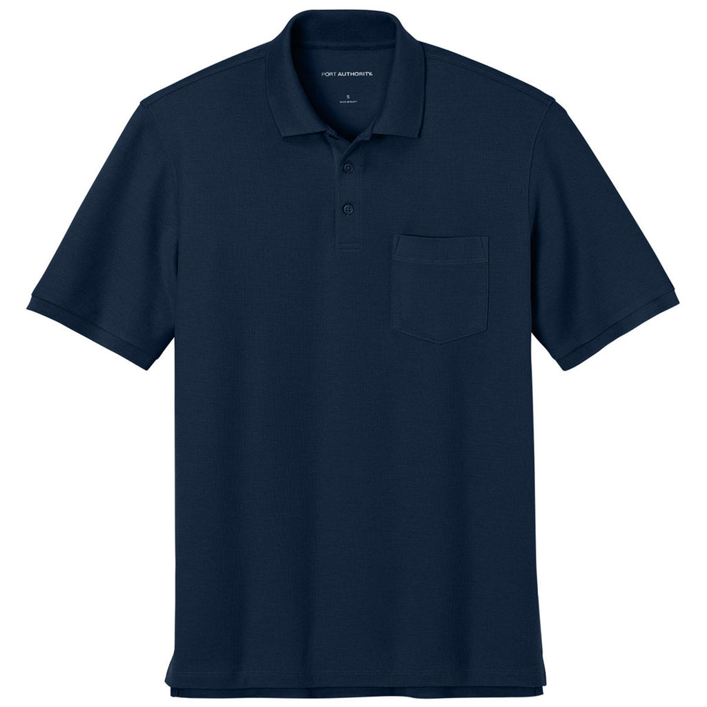 Designed with a tall fit, the Port Authority Men's River Blue Navy Tall Wearever Signature Pique Pocket Polo ensures comfort and style for every wearer. Its breathable pique fabric offers structure and polish, making it suitable for business or casual settings. With custom embroidery, it becomes an essential piece of corporate apparel that balances practicality with professionalism.Highlights