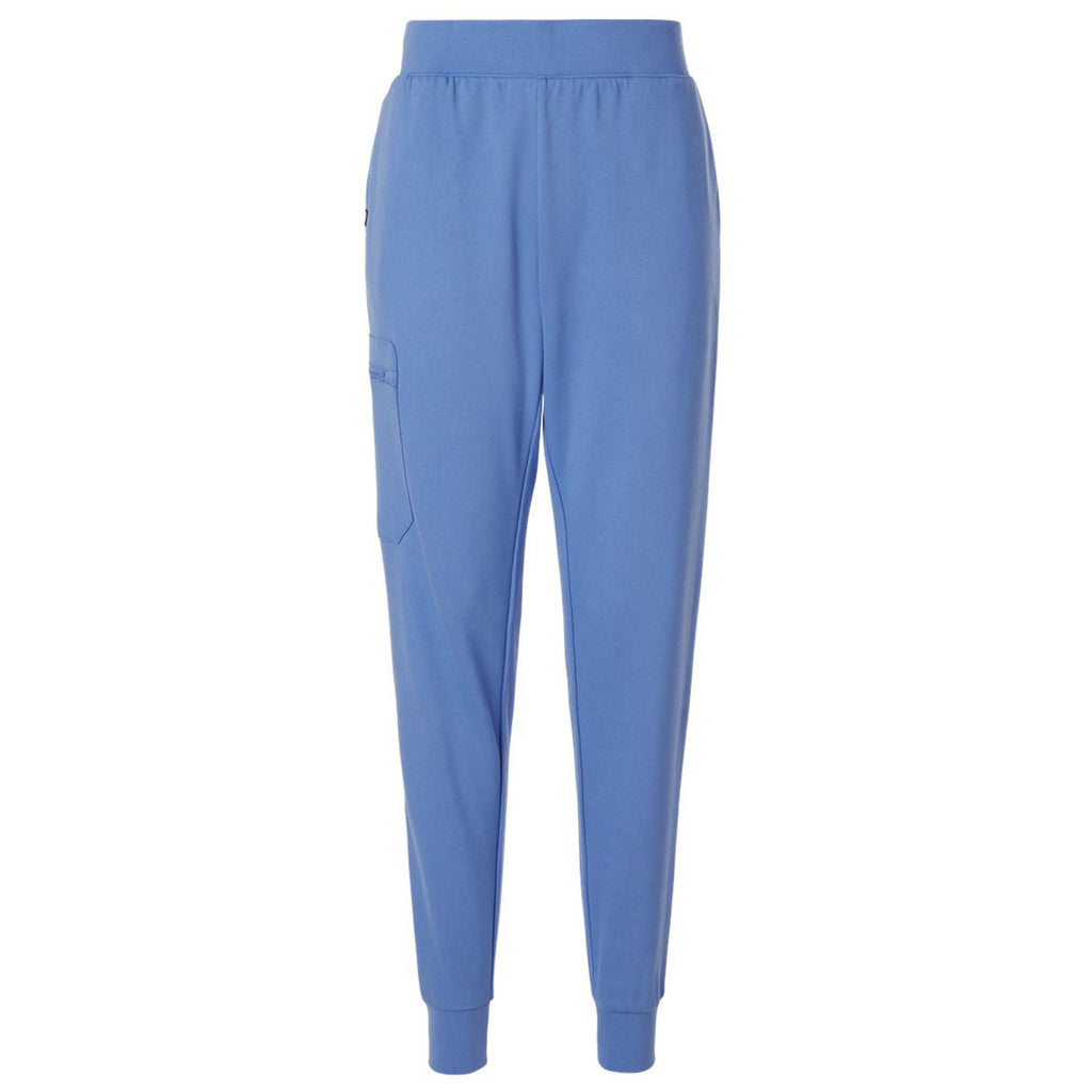 Jaanuu Women's Ceil Blue Rubi Ultrasoft Scrub Joggers with custom embroidery make a great gift or corporate uniform for those in the healthcare or health and wellness industries. These slim fitting joggers have four-way stretch, moisture management properties, and several pockets for convenience as you go about your day.