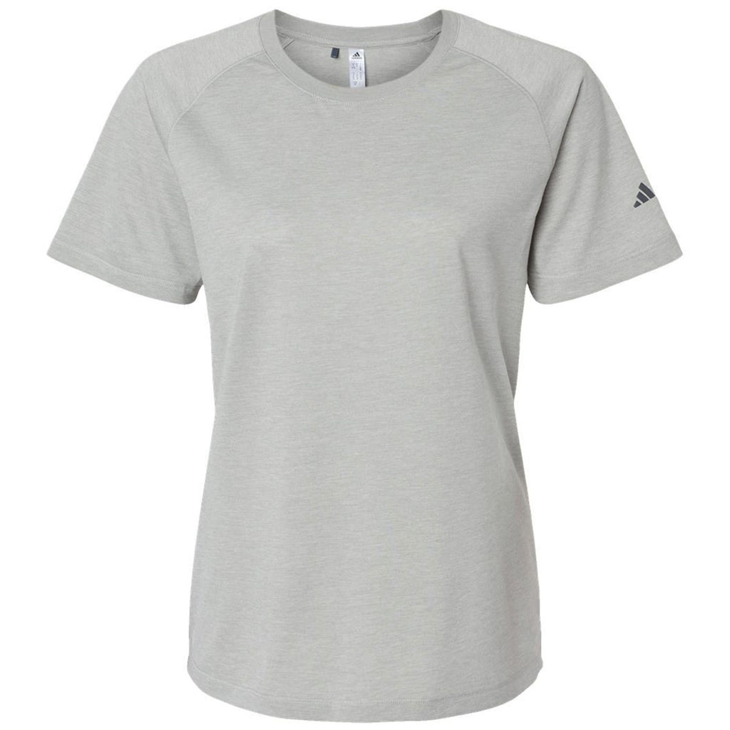 The Adidas Women's Medium Grey Heather Blended T-Shirt with a custom logo is a must-have for those who like to relax and have a little fun. The regular-fitting tee is highly versatile and looks great during almost any activity. Made of recycled polyester and cotton, the sustainable tee can serve as brand awareness, team gear, or daily wear with ease.This product cannot ship outside of the United States