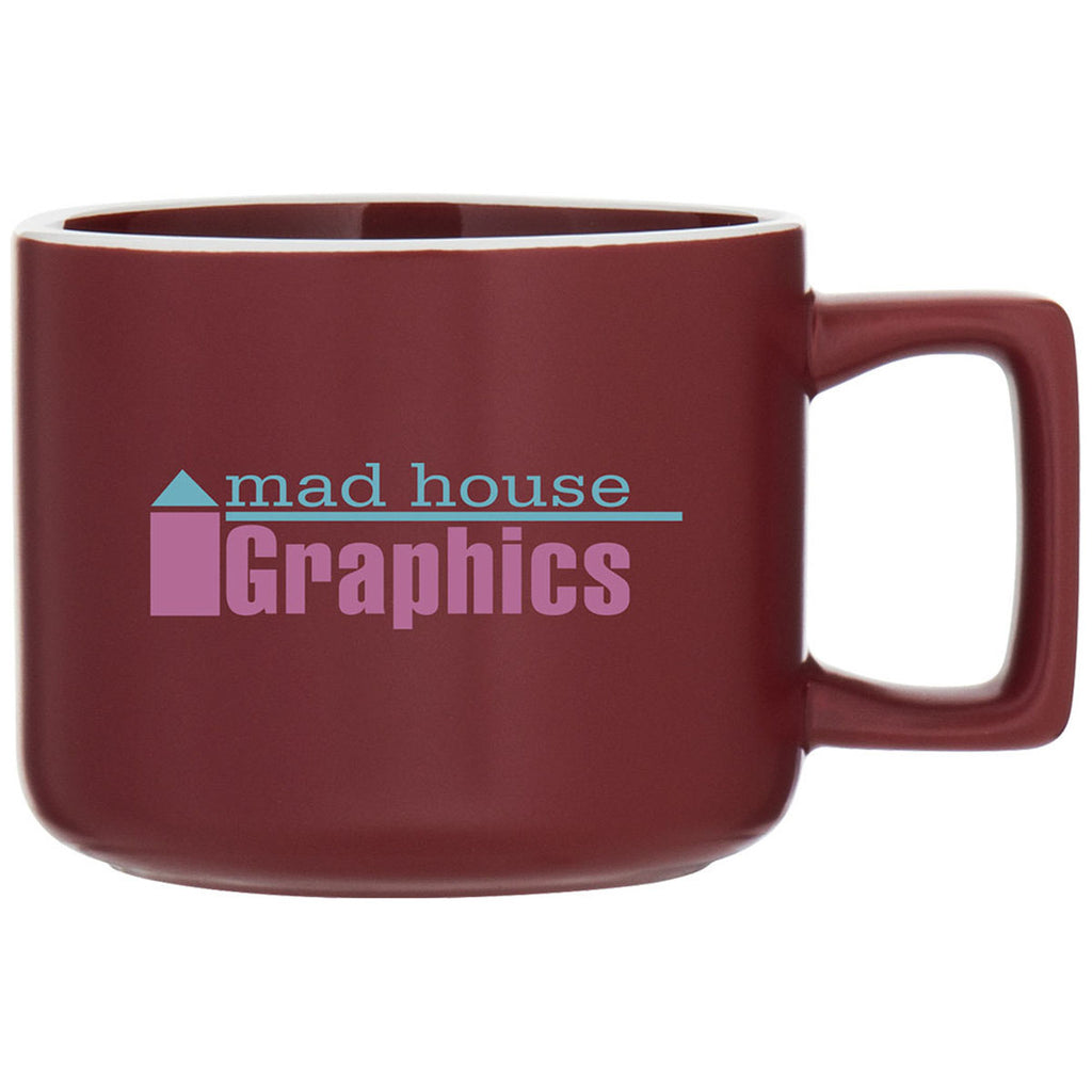 Enhance your brand with a custom ETS Express Matte Maroon Helio 12oz Ceramic Mug, perfect for morning coffee or tea. Its smooth, glossy finish and sturdy handle provide a comfortable grip, while the classic design complements any setting. Ideal for offices, cafes, or promotional gifts, this mug ensures your logo gets daily visibility.