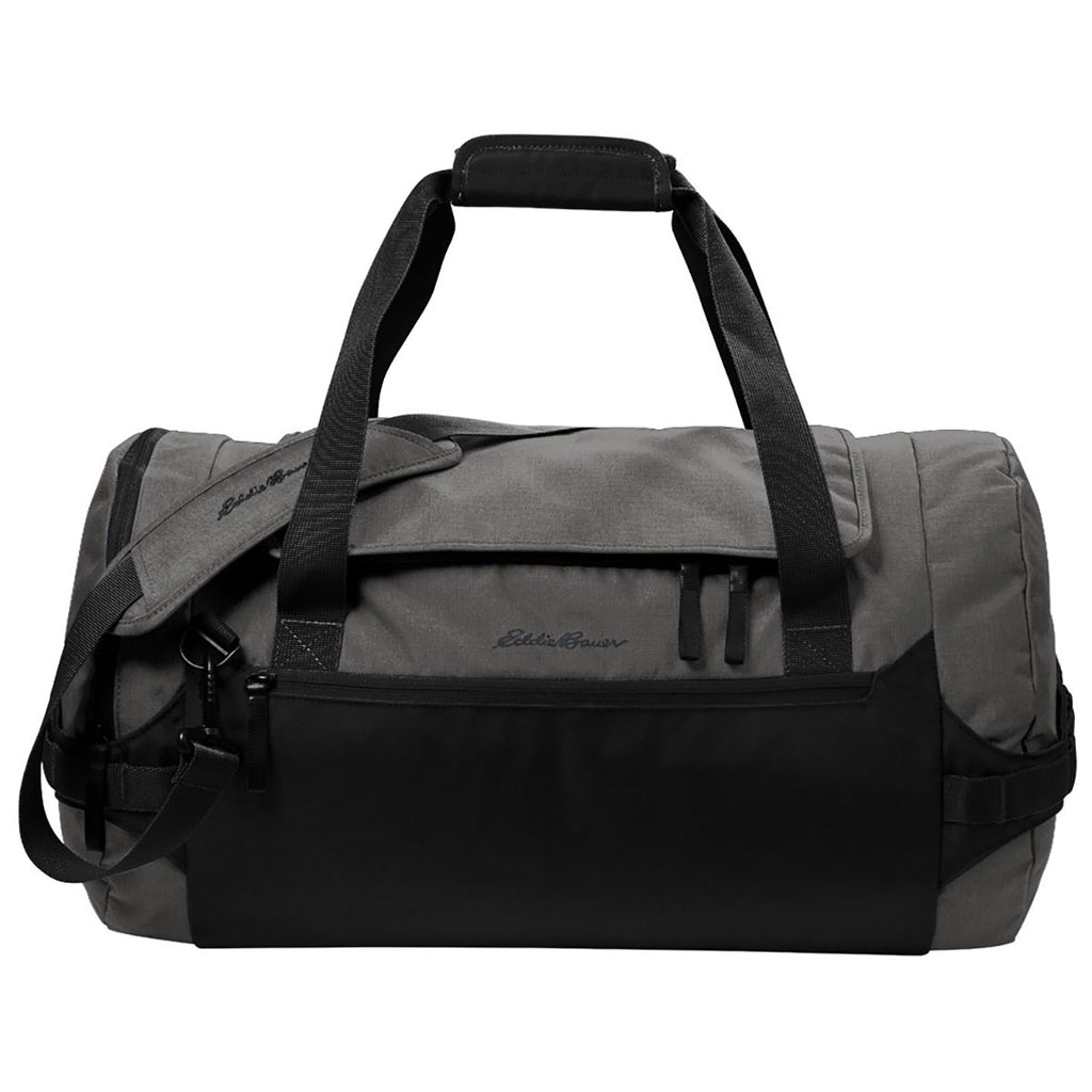 Design your custom logo for the Eddie Bauer Grey Steel Heather/ Black Tour Duffel for an easy to grab and go bag that is great for the gym, the morning commute, or an overnight trip. The spacious D-shaped main compartment holds all your basics with a separate shoe compartment, front valuables compartment, and adjustable, padded straps for comfort in carrying. Order yours today.