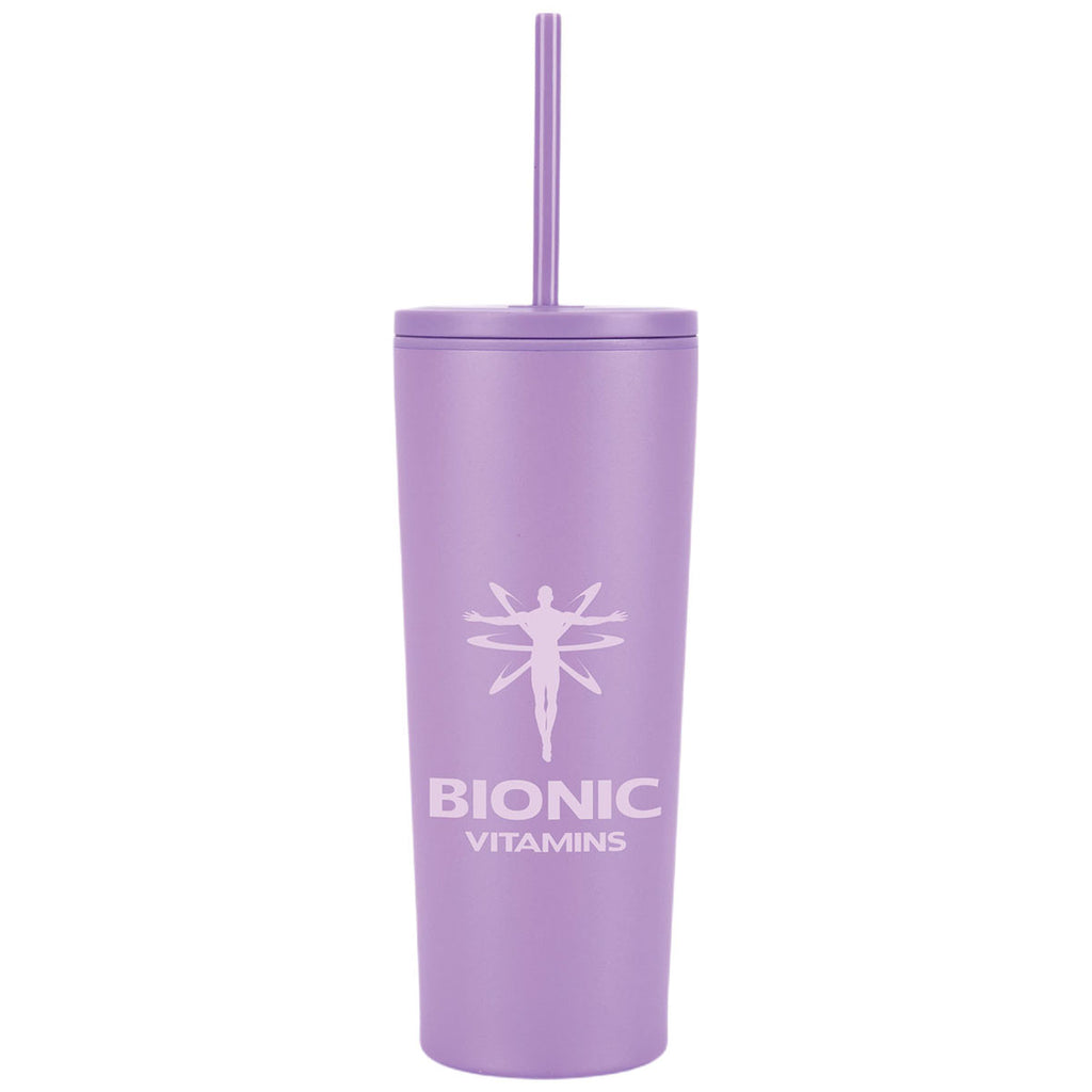 The Logomark Purple Bayard 24 oz. Double Wall Steel/PP Liner Straw Tumbler is a versatile custom drinkware option perfect for on-the-go lifestyles. It features a flip-top lid with a straw, and the double-wall design helps maintain drink temperature. Ideal for gyms, giveaways, or wellness campaigns looking for functional items with bold branding impact.