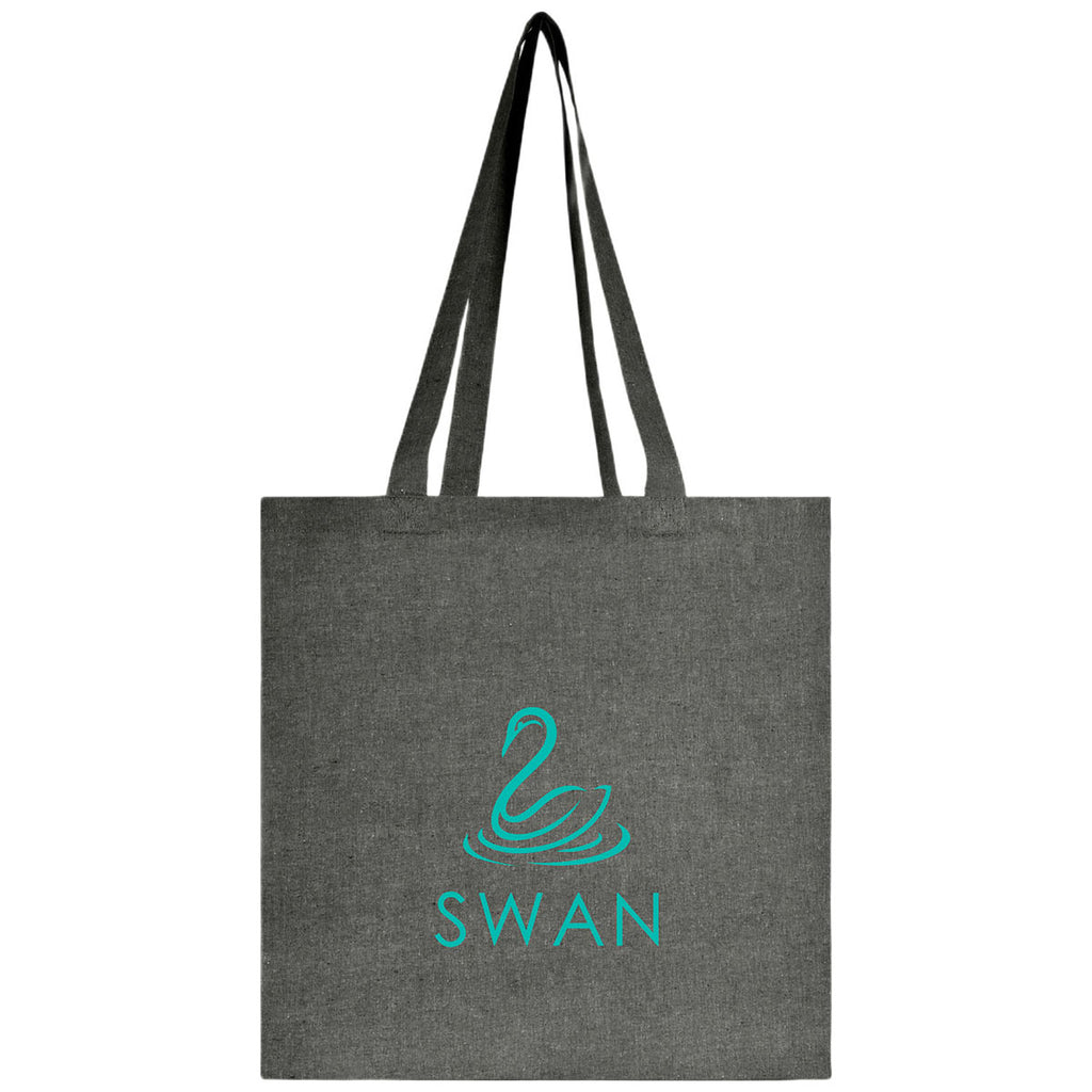 The Logomark Black Vitality 4.5 oz Recycled Cotton Tote Bag is a lightweight custom staple for events, retail packaging, or green promotions. Made from recycled cotton, it's foldable, reusable, and budget-friendly. Great for eco-conscious branding at scale-without compromising style or message.The minimum order for this product is 150 pieces.