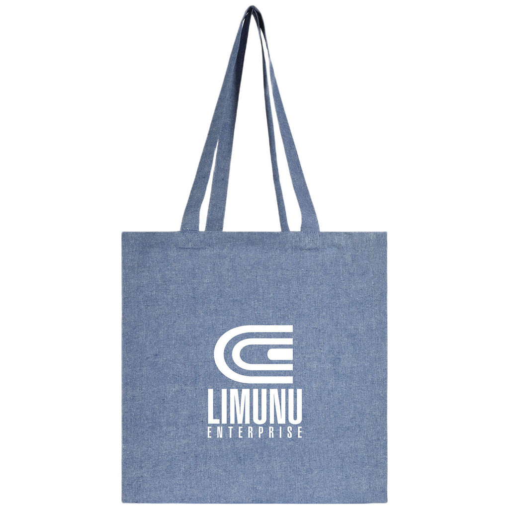 The Logomark Navy Vitality 4.5 oz Recycled Cotton Tote Bag is a lightweight custom staple for events, retail packaging, or green promotions. Made from recycled cotton, it's foldable, reusable, and budget-friendly. Great for eco-conscious branding at scale-without compromising style or message.