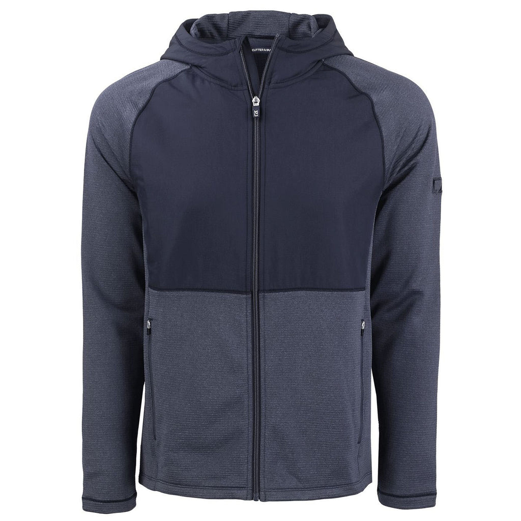 Cutter & Buck Men's Navy Blue Heather Peshastin Fleece Recycled Hybrid Jacket