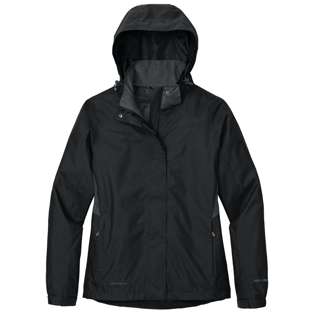 If you thought it was impossible to stay looking fresh in the rain, you haven't met the Eddie Bauer Women's Black/Steel Grey Rain Jacket. The 5000MM-rated waterproof fabric is not only 100% nylon, but it does an excellent job of keeping the rain where it belongs'outside. The storm flap with hook and loop closures, the zippered pockets'well, those don't hurt, either. Adding your company's logo to the front will give your employees a rain jacket that keeps them warm, keeps them dry, and ultimately, makes a rainy day about as comfortable as a rainy day can be.