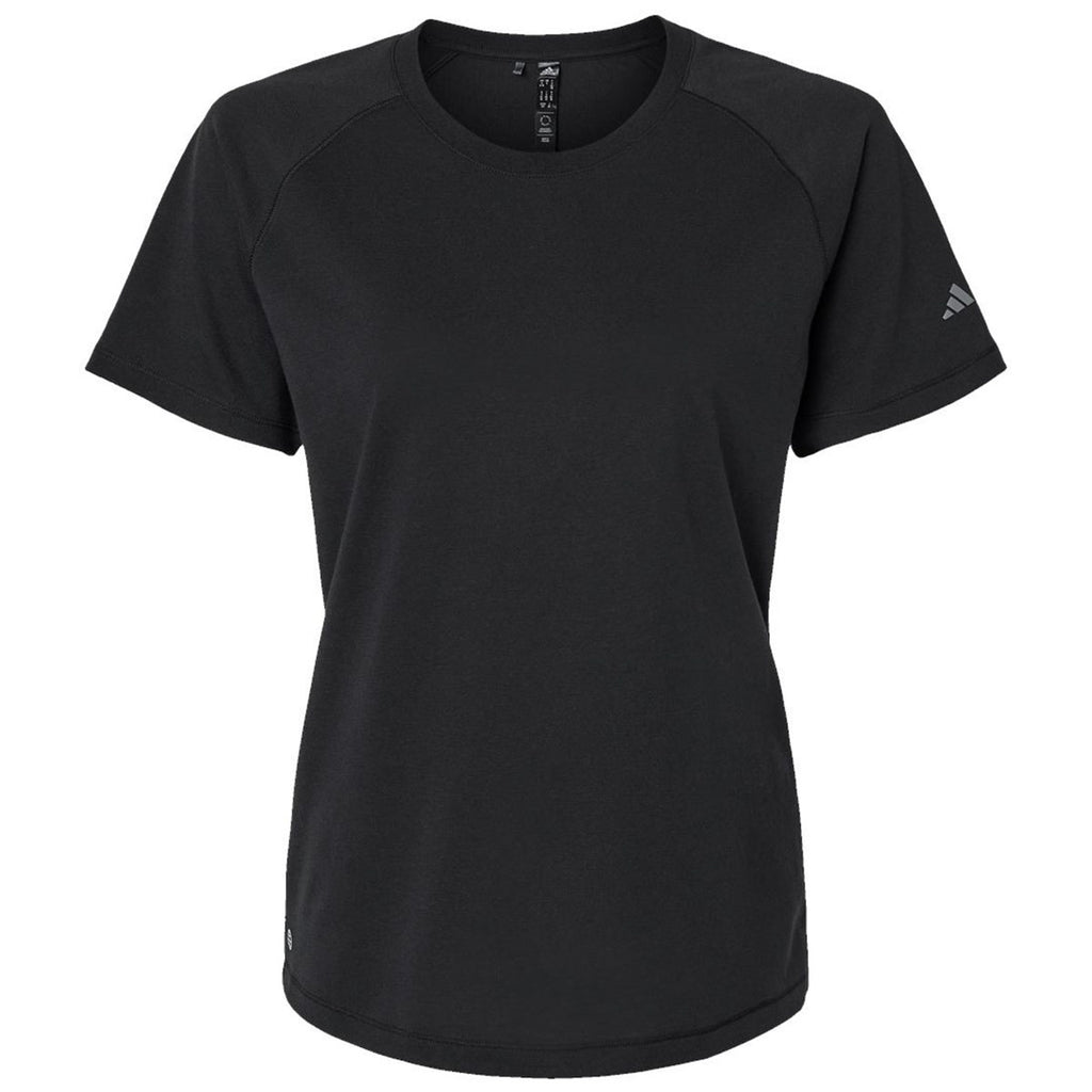 The Adidas Women's Black Blended T-Shirt with a custom logo is a must-have for those who like to relax and have a little fun. The regular-fitting tee is highly versatile and looks great during almost any activity. Made of recycled polyester and cotton, the sustainable tee can serve as brand awareness, team gear, or daily wear with ease.This product cannot ship outside of the United States
