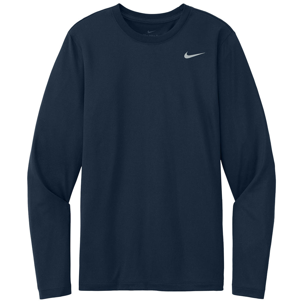The Nike Men's College Navy Team rLegend Long Sleeve Tee is a corporate-ready performance piece with custom branding appeal. Its moisture-wicking fabric keeps wearers dry and comfortable, while the athletic fit supports active lifestyles. Embroidered or printed logos stand out against the sleek design, making it a versatile option for giveaways, team apparel, or branded merchandise.This product cannot ship outside of the United States.