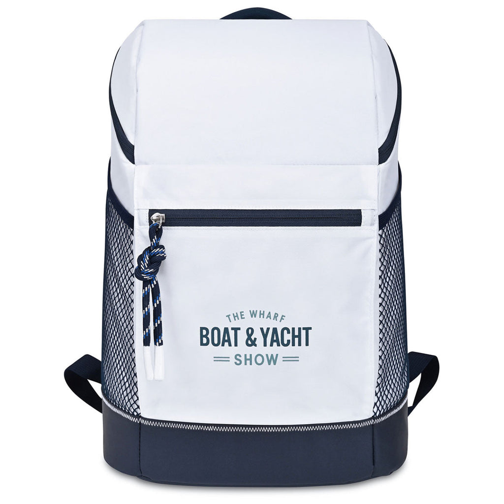 A crisp, clean exterior design makes the Gemline White Harborside Backpack Cooler an ideal place to show off your company's custom logo or design. Great for picnics, tailgates, beach days, and more, this highly portable cooler features multiple zippered pockets and exterior compartments so everything can stay organized.