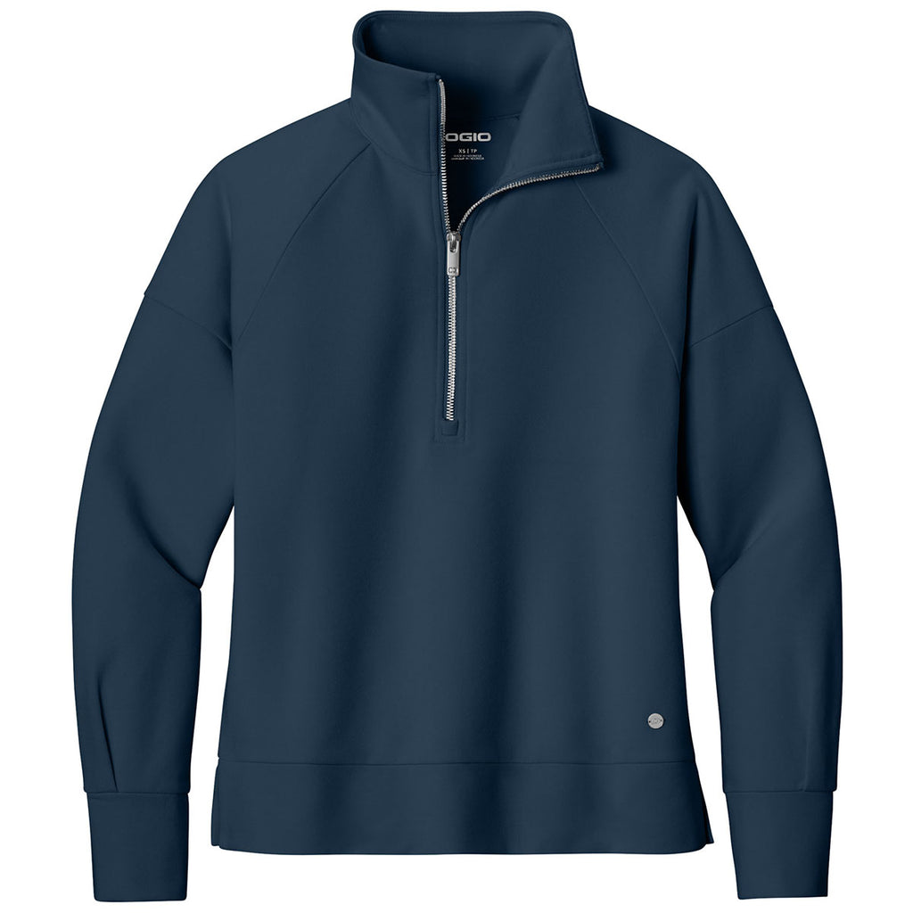 OGIO Women's River Blue Navy Luuma 1/2-Zip provides soft comfort with corporate polish. Its lightweight fabric is perfect for layering, while the modern cut creates a flattering fit. Custom embroidery highlights logos subtly and professionally, making it ideal for team apparel or employee gifts. Stylish yet practical, this piece ensures all-day comfort with a touch of sophistication.This product can only ship within the United States, Puerto Rico, Canada, and Mexico.