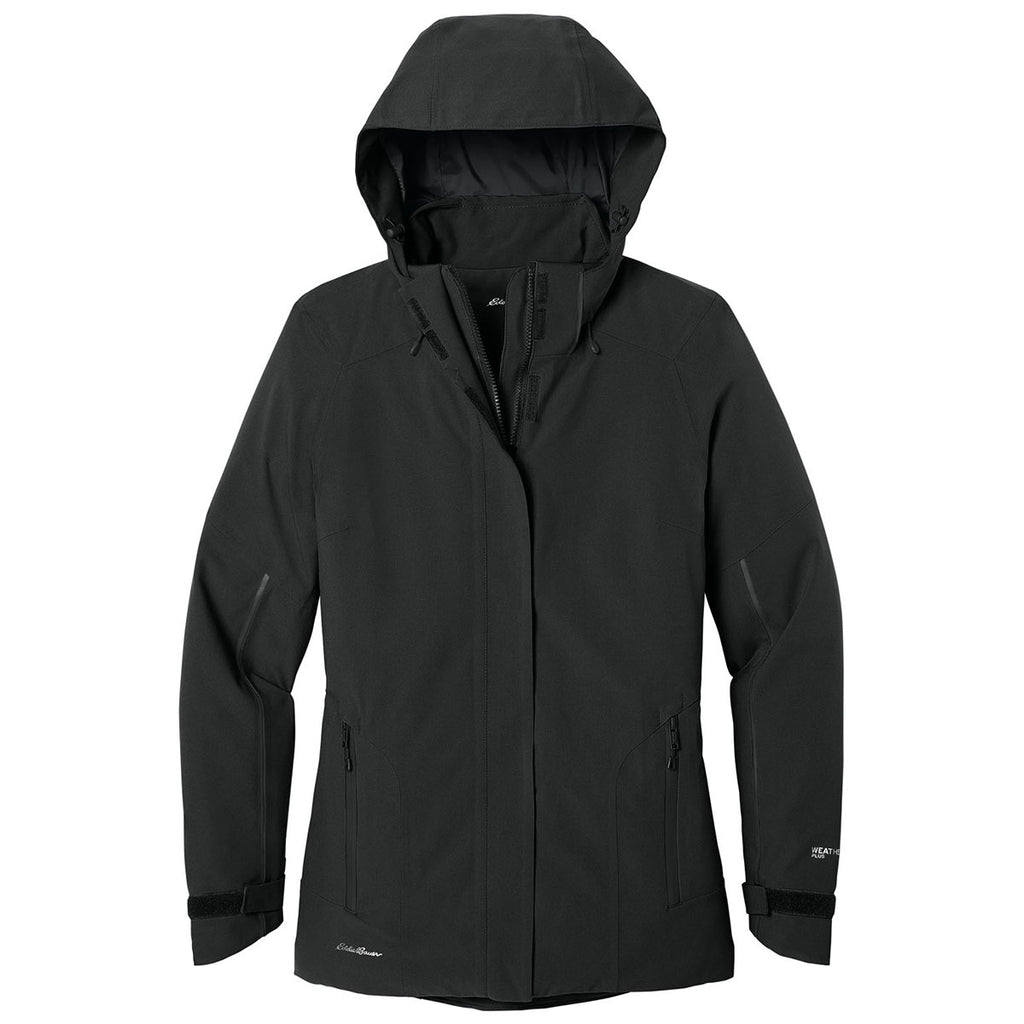 Manufactured to outlast the worst weather, the embroidered Eddie Bauer Women's Black WeatherEdge Plus Insulated Jacket gives you the edge over Mother Nature. The fully seam-sealed technical jacket scores high on the waterproof and breathability scales. Trademarked WeatherEdge technology includes proprietary Storm-Repel water repellent to add an additional layer of protection against harsh weather. Fully insulated to keep you warm, the ladies jacket comes with an interior pocket to store electronic devices. All of this adds up to a jacket that keeps you warm and comfortable all day long. Attach a custom logo on the large imprint area to spread the word about your products and services at industry trade shows.
