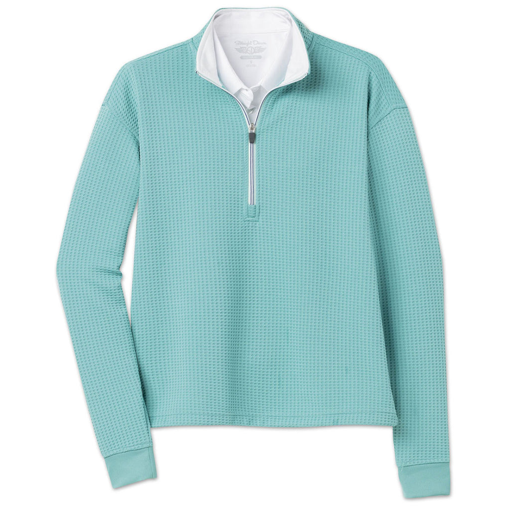 Designed with comfort and movement in mind, the Straight Down Women's Sea Green Opal Half Zip fits seamlessly into any custom apparel collection. Lightweight and breathable, it layers well for travel or cool-weather outings. The relaxed fit and mock neck add casual sophistication, making it a go-to for active or branded wear.Highlights