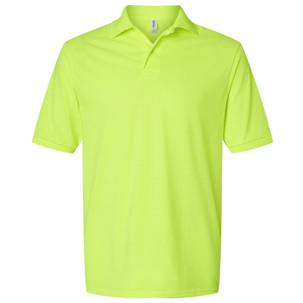 Choose embroidery for the Jerzees Men's Safety Green Dri-Power Polo made of sustainably sourced cotton. This classic polo is comfortable for all-day wear weather at work, hitting the driving range, or going out to drinks with friends at the club. Your custom design will pop on the preshrunk fabric that is created for long-lasting wear.Highlights