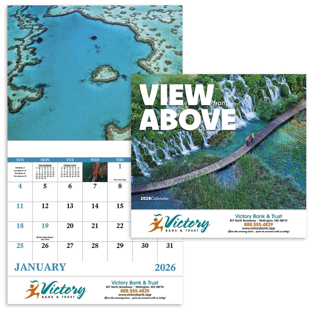 Choose a corporate design for the Good Value Custom View from Above - Stapled booklet that showcases breathtaking aerial photography of landscapes from around the world. This product is perfect for travel, tourism, or real estate businesses, offering clients a captivating visual experience. Its compact design makes it an effective marketing tool for direct mail campaigns or events.The minimum order for this product is 100 pieces.
