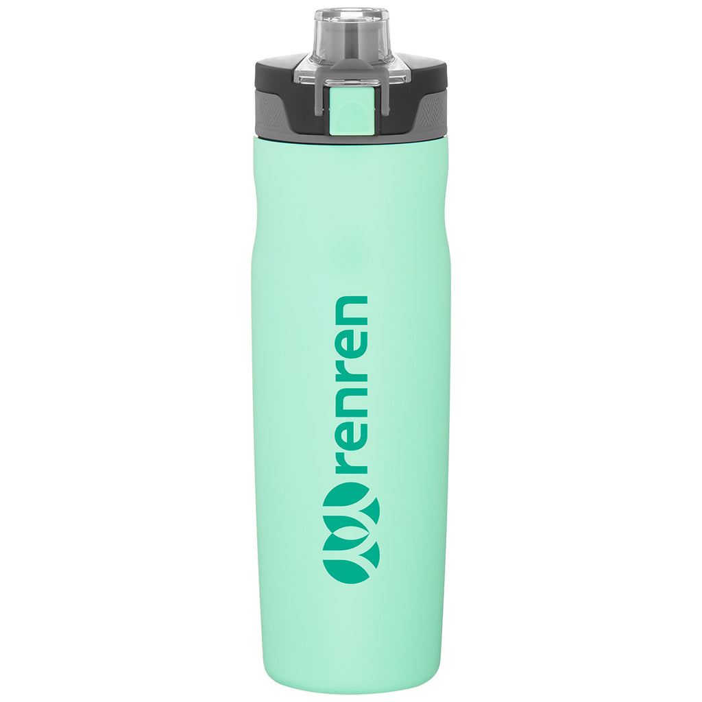 The H2Go Matte Badminton Jolt 20.9 oz Water Bottle with a custom logo is an easy to use, daily carry bottle that is ready for whatever happens to be on your schedule. The double wall stainless steel thermal bottle has a copper vacuum insulation to keep your drinks at the right temperature for hours. The threaded one-touch push button lid has a locking mechanisms, spout cover, drinking spout, and removable carrying strap to use when hiking, biking, or just hanging with friends. Add a company logo to use at trade shows or special events. Place an order today so you do not miss out.