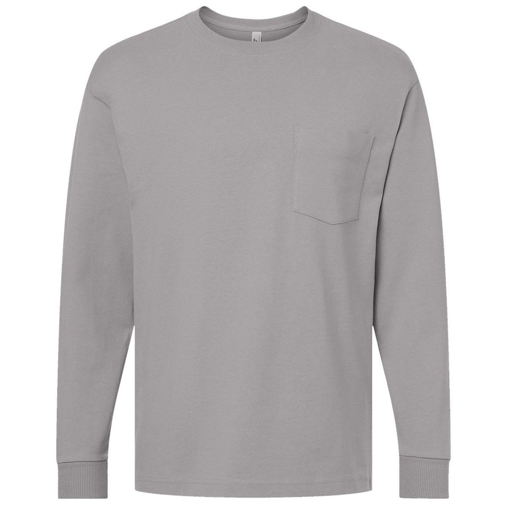 American Apparel Unisex Gravel Super Heavyweight Long Sleeve Pocket Tee with a custom logo offers an oversized fit that keeps you comfortable all day long. The relaxed-fitting tee is a must-have for layering and relaxing, whether that means playing a pick-up game of basketball, working out, or just chilling as you watch the big game.Highlights