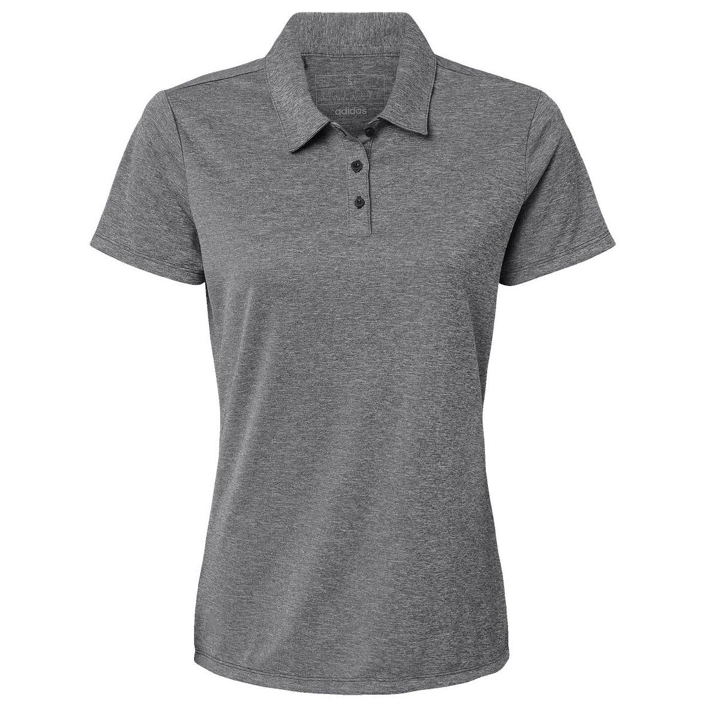 Add embroidery to the Adidas Women's Black Melange Heathered Polo for a soft yet refined look that is just as comfortable on the sales floor as on the tennis court. This classically styled polo with a three-button placket has the contrast Adidas logo on the right hip to demonstrate quality. Give it as a gift or add it to your logoed apparel line.