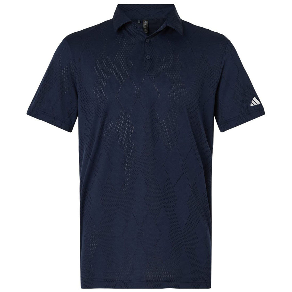 Performance and polish come together in the Adidas Men's Collegiate Navy Ultimate Textured Polo. This corporate-ready piece features subtle texture, UPF protection, and a sharp fit that's ideal for both office and outdoor branding. Add your custom logo to make a lasting impression in any setting.This product can only ship within the United States.