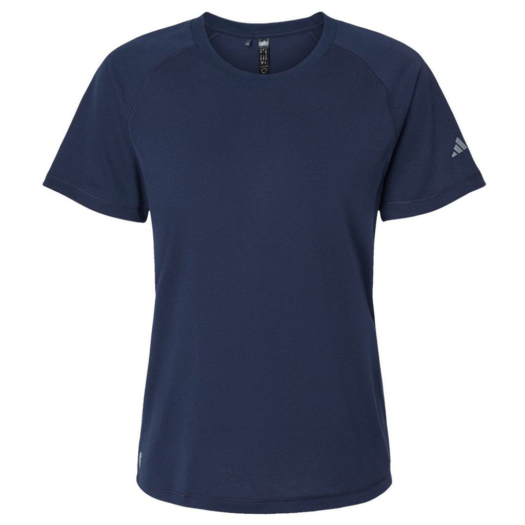 The Adidas Women's Collegiate Navy Blended T-Shirt with a custom logo is a must-have for those who like to relax and have a little fun. The regular-fitting tee is highly versatile and looks great during almost any activity. Made of recycled polyester and cotton, the sustainable tee can serve as brand awareness, team gear, or daily wear with ease.