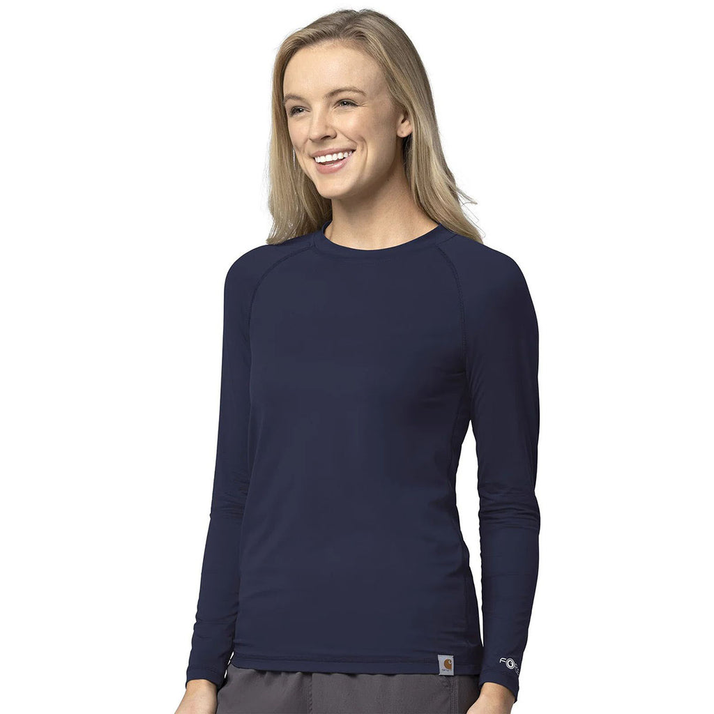 Carhartt Women's Navy Modern Fit Long Sleeve Tee with a corporate logo is a wonderful way to promote your brand and show off your style. This easy-to-layer shirt can be worn alone or with additional layers as needed while you enjoy the great outdoors, go for a run, or simply create a look. Perfect as part of team gear or athletic wear.Highlights