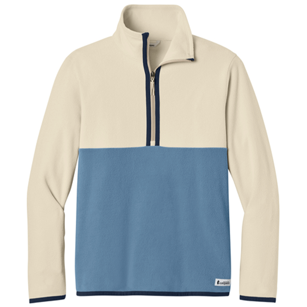 The Cotopaxi Men's Cream/Fjord Amado 1/2-Zip Fleece offers custom, cozy warmth and a stylish, athletic fit for outdoor excursions or casual office wear. Its moisture-wicking fabric keeps you comfortable during active days and works perfectly for corporate gifting. This fleece is an essential layer for every wardrobe, durable, soft, and versatile.This product can only ship within the United States and Canada.