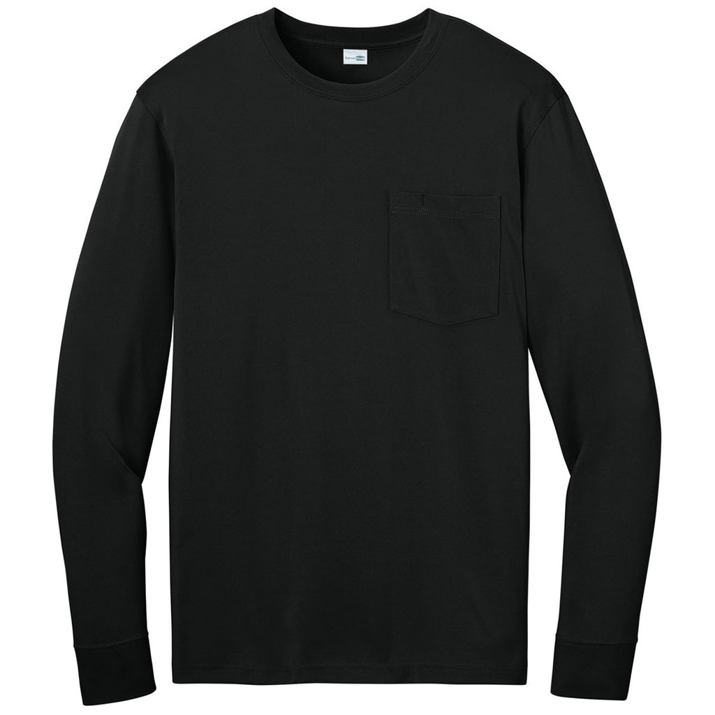 Custom logos enhance the CornerStone Men's Black Workwear Pro Long Sleeve Pocket Tee, a reliable workwear staple. Durable fabric and a convenient pocket make it practical for long days on the job. As corporate apparel, it offers both function and professionalism, giving employees a comfortable uniform piece that reflects your brand.Highlights