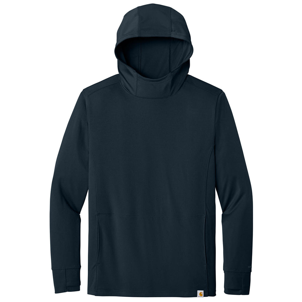 Carhartt Men's Navy Force Sun Defender Long Sleeve Hooded T-Shirt with a custom design offers built-in sun protection with moisture-wicking technology. Designed to keep you cool and shielded, this shirt is ideal for outdoor work or recreational activities. The hood provides extra coverage, making it an excellent choice for those who need reliable UV defense and comfort on long days outside.This product can only ship within the United States and Canada.