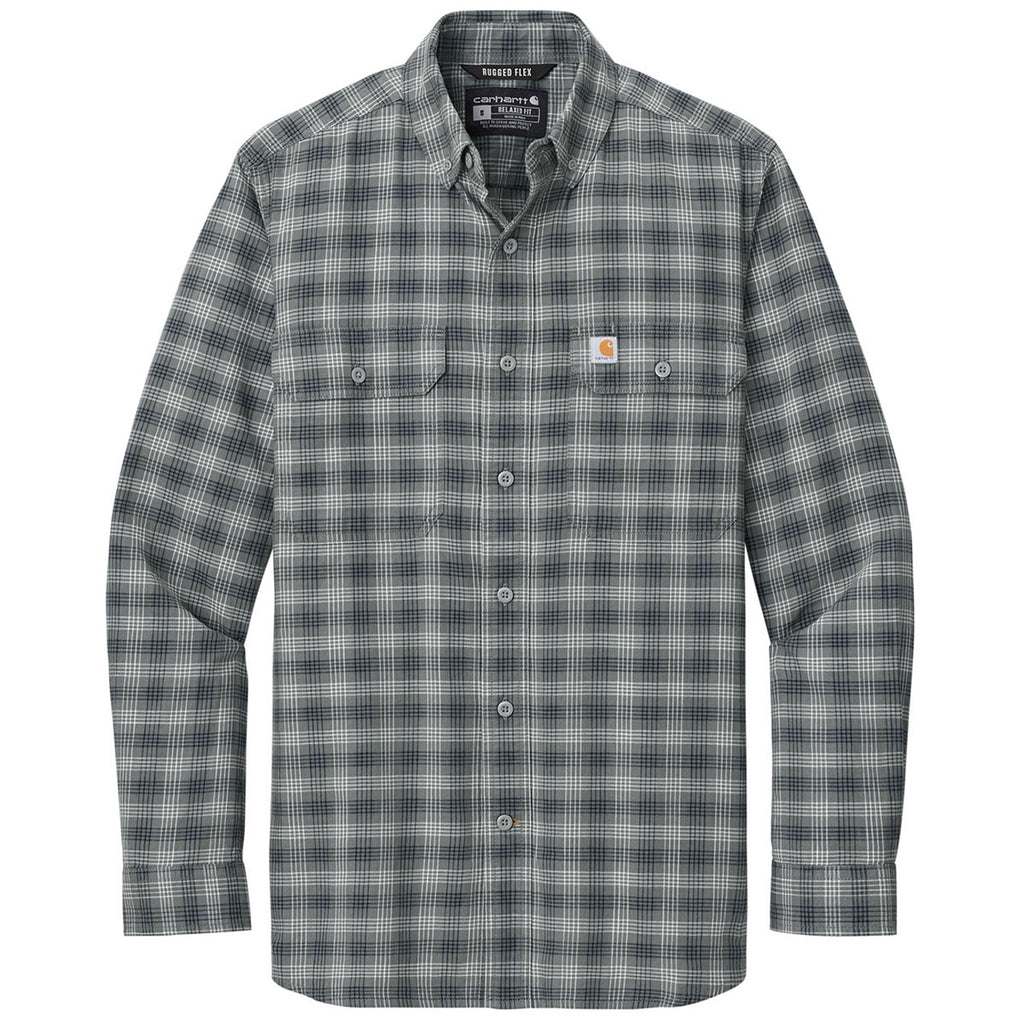 Carhartt Men's Plaid Steel Navy Rugged Flex Plaid Long Sleeve Shirt