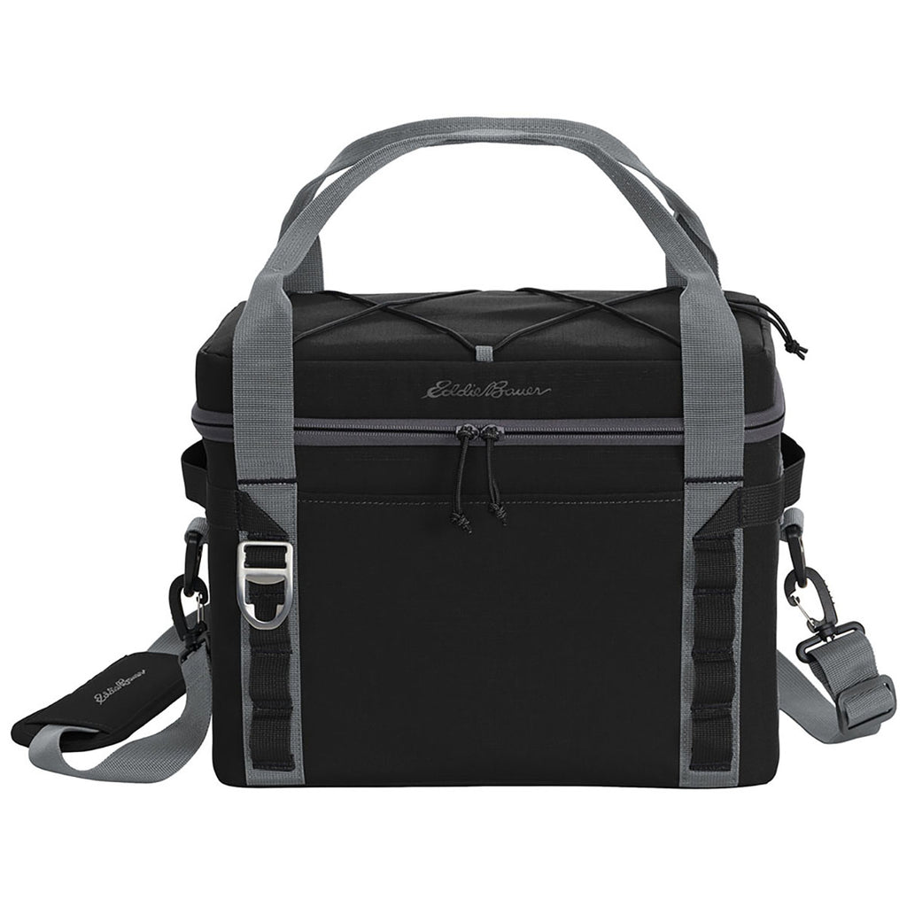 Enjoy your day off with a custom Eddie Bauer Black/Grey Steel Max Cool 24-Can Cooler in dual tone colors. Created for maximum ice retention, this cooler is ready to go tailgating at your next team event. Add an embroidery design or name so that no one accidently grabs your cooler at a picnic or company event. Made of heavy-weight, leakproof PEVA lining with ripstop polyester and PVC coating, this cooler is ready to go when you are. Add a company logo to offer these as employee gifts. This cooler even offers a little extra with a never lost bottle opener, front slip pocket, and padded shoulder strap. This is the cooler everyone will choose for road trips, campouts, and game days.