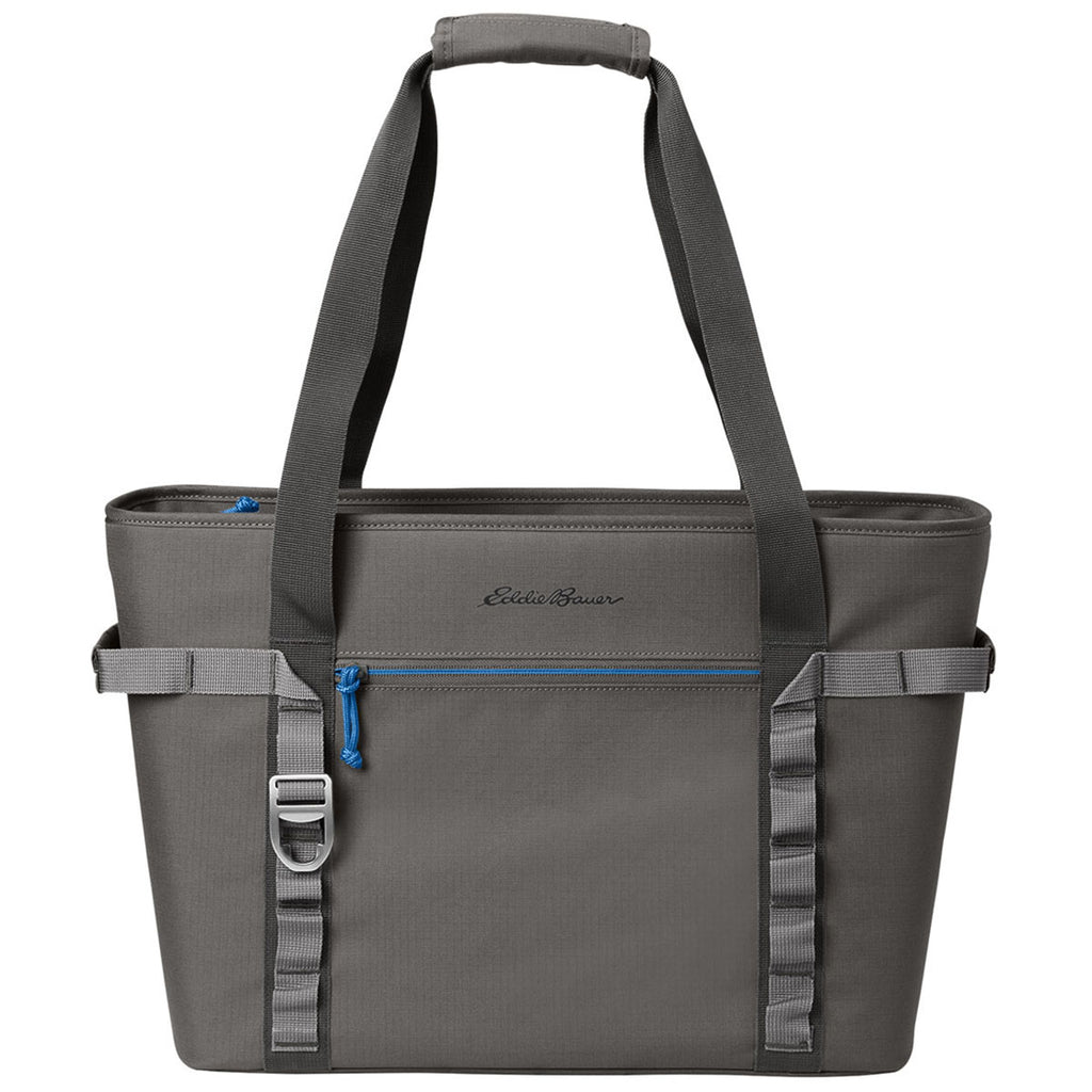 Keep organized with a custom Eddie Bauer Metal Grey/Expedition Blue Max Cool Tote. This bag-like tote is great for taking food to the beach, a park, or on a long road trip. The 1-inch thick, high-density, closed-cell insulating foam keeps cool items at the right temperature while allowing for easy access. Place your order today. These will sell fast.This product can only ship within the United States, Puerto Rico, Canada, and Mexico.