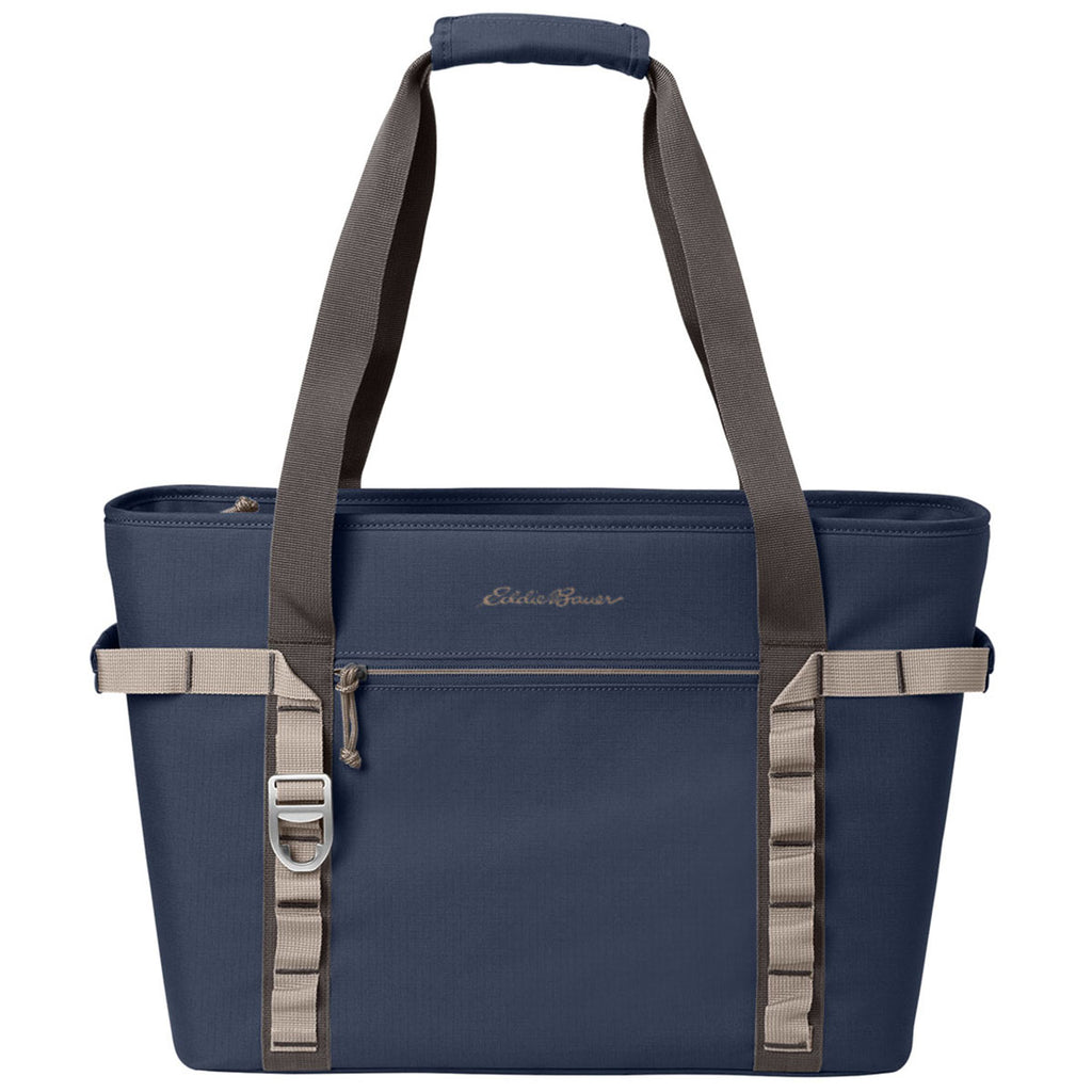 Keep organized with a custom Eddie Bauer River Blue Navy/Chrome Max Cool Tote. This bag-like tote is great for taking food to the beach, a park, or on a long road trip. The 1-inch thick, high-density, closed-cell insulating foam keeps cool items at the right temperature while allowing for easy access. Place your order today. These will sell fast.This product can only ship within the United States, Puerto Rico, Canada, and Mexico.