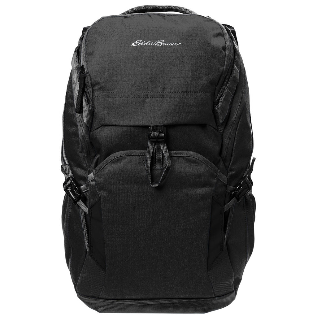 Add a custom logo to the Eddie Bauer Black Tour Backpack to make sure you can easily identify your bag at the airport, office, or wherever adventure takes you. Designed for hiking, biking, camping, or overnight travel, the dedicated laptop compartment, front zippered valuables compartment, and side mesh pockets offer plenty of storage no matter what you need. Order today.