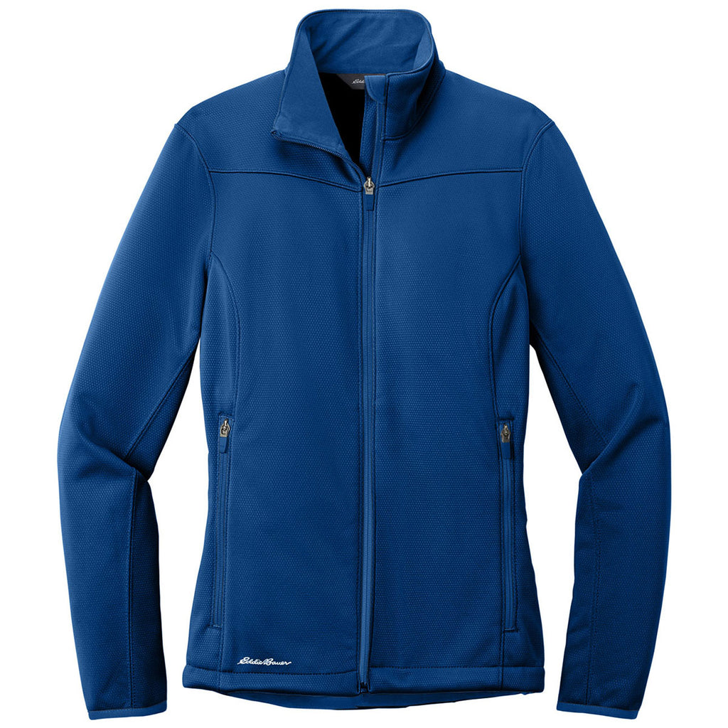 Getting outdoors in bad weather is tough enough; don't make it any more difficult on yourself. More specifically, acquire an Eddie Bauer Women's Cobalt Blue Weather-Resist Softshell Jacket to make the journey outdoors far more comfortable and far more durable. With a 10,000MM fabric protection rating helping ensure your dryness even in wet conditions, you'll be able to brave just about any weather type short of extreme. (And, really, you shouldn't be out there in extreme weather anyway.) Add your own custom embroidery to this softshell jacket to weather any storm, whether literal or one that metaphorically challenges your wardrobe.