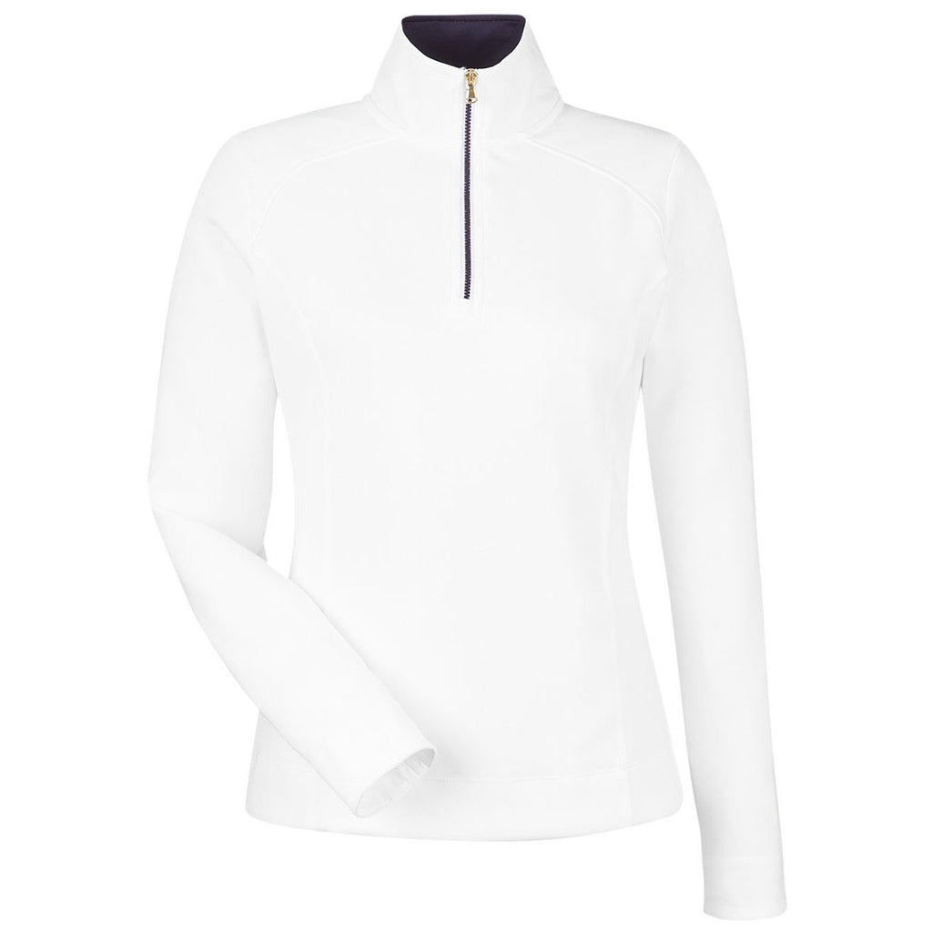 Fairway & Greene Women's White/Eclipse Wells Quarter-Zip Tech Pullover with a corporate logo or design is a fun and fashion friendly way to promote your brand. The soft, polyester blend pullover is easy to layer while running errands, enjoying brunch, or heading to work at a special outdoor event. UPF 50+ protection will keep you protected from the damaging rays of the sun even on cooler days.Highlights