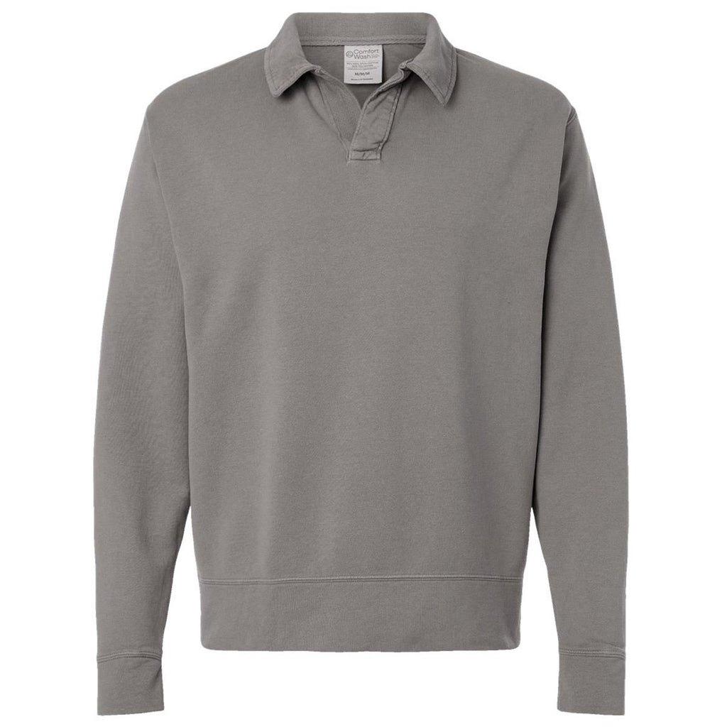 ComfortWash by Hanes Men's Concrete Grey Garment-Dyed Polo Collar Sweatshirt