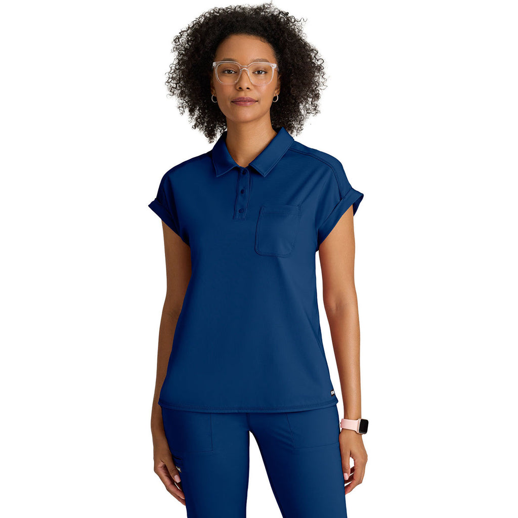 Grey's Anatomy Women's Indigo (Navy) One Pocket Polo Neck Renew Top