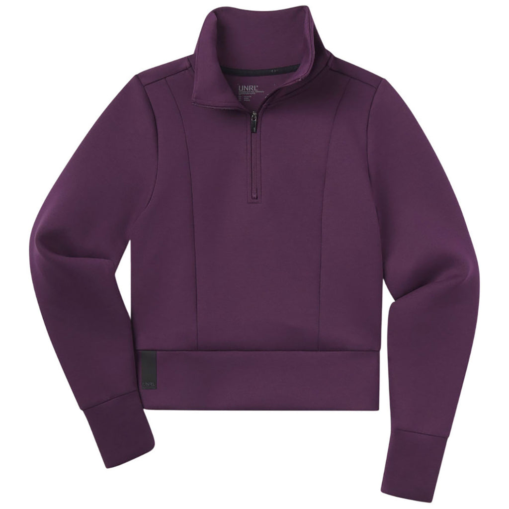 UNRL Women’s Dark Plum LuxBreak Half-Zip Pullover with a custom logo is a sleek, comfortable way to create a versatile look. With premium detailing, this pullover bridges the gap between casual and office chic and can be paired with leggings, slacks, or jeans. It's great for an upscale casual look at work or play. Place an order today.