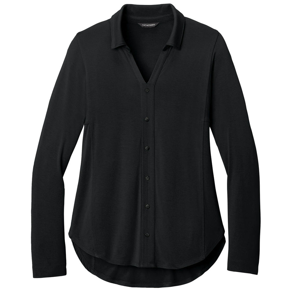 Port Authority Women's Deep Black Luxe Knit Button Tunic