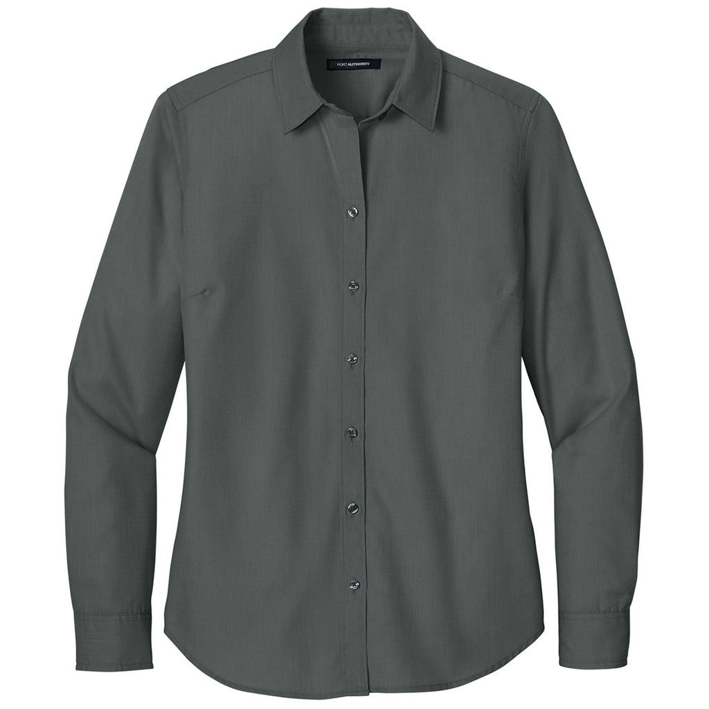 Port Authority Women's Deep Black Long Sleeve Nailhead Easy Care Shirt with a corporate logo creates a polished look with a touch of sophistication. The nailhead texture adds subtle style, while the easy-care fabric ensures low maintenance. Perfect for the office or more formal occasions, this shirt combines professional appeal with practicality, keeping you sharp and comfortable throughout the day.Highlights