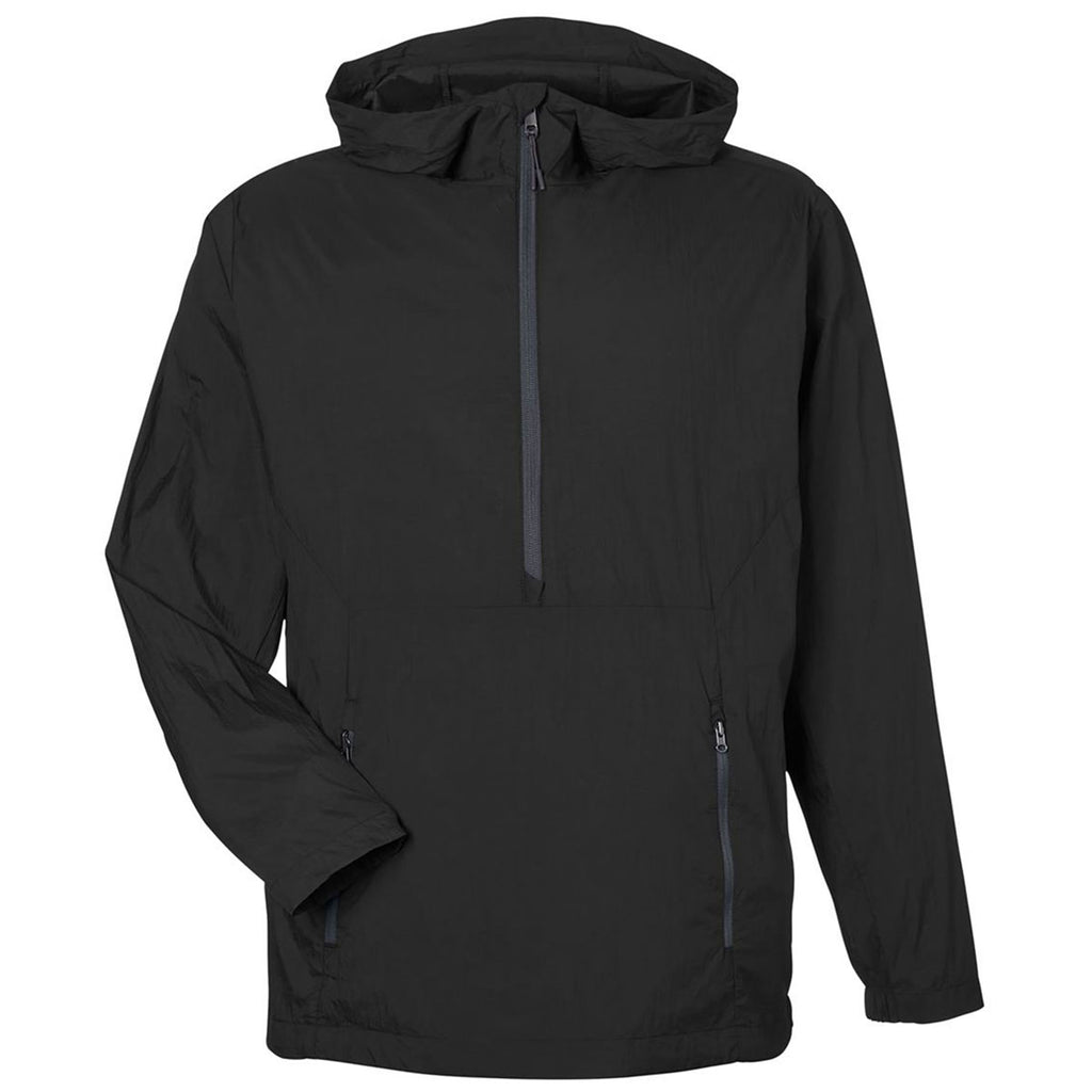 Function meets flexibility with the North End Men's Black/Carbon Aura Lightweight Packable Anorak. This custom outer layer offers water-resistant fabric and a stowable hood, and it packs neatly into its own pocket. Whether used for outdoor events or staff travel, it's a smart corporate choice that delivers style and portability.Corresponding Women's Style: North End Women's Black/Carbon Aura Lightweight Packable Anorak