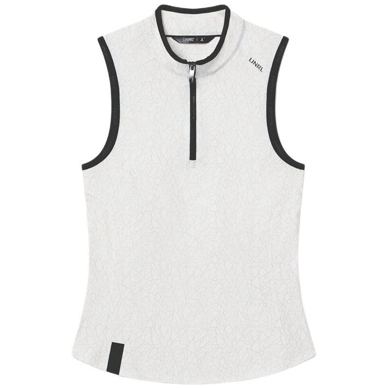 Bring a custom edge to your athletic wardrobe with the UNRL Women's White-Beige Performa Sleeveless Polo. Designed for peak performance, it offers a flattering cut and breathable stretch fabric that moves with you. Moisture-wicking and featherlight, it's perfect for the course, the court, or casual Fridays. Stay cool and stylish while making a professional impression.Highlights
