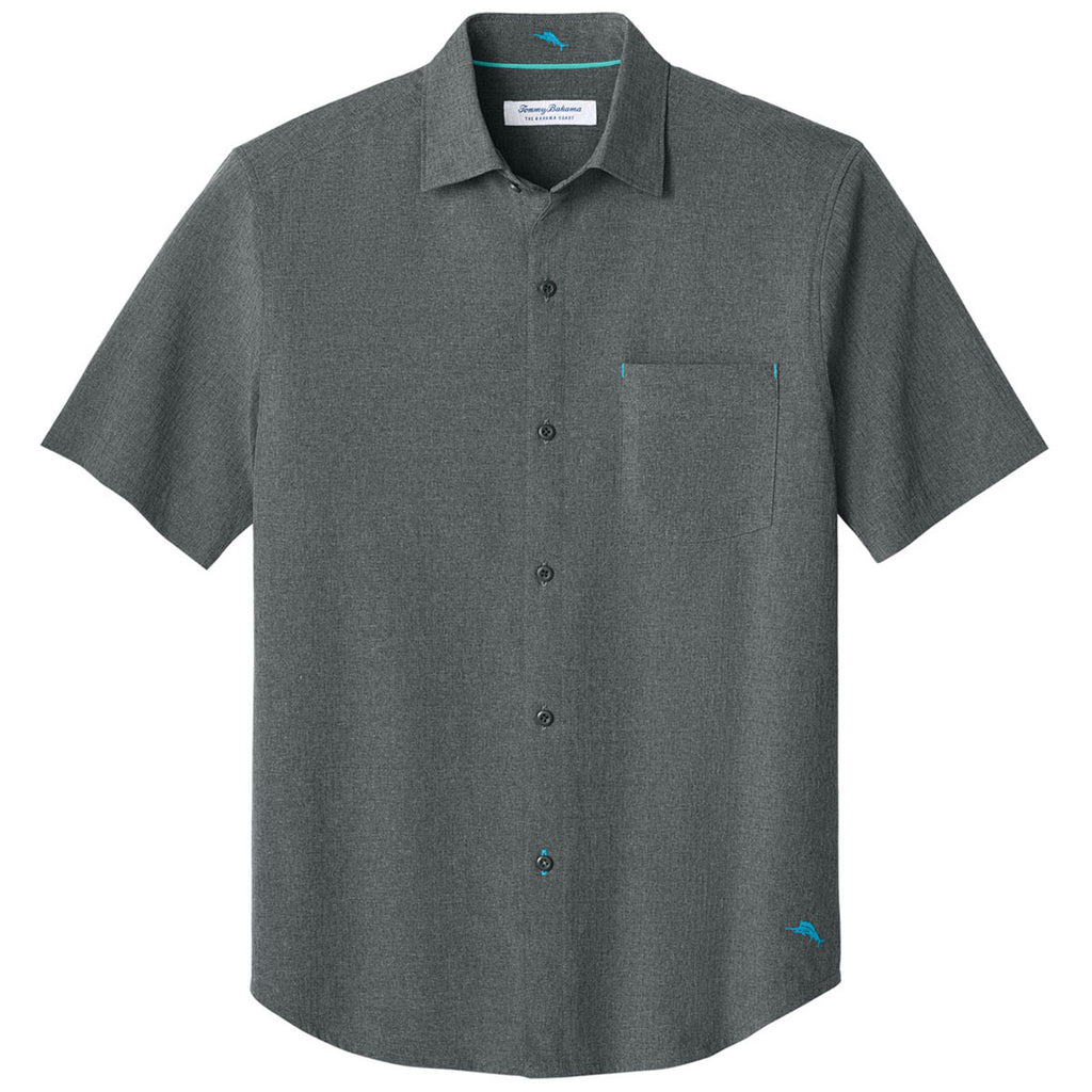 Tommy Bahama Coal Sandy Point Short Sleeve Shirt with embroidery brings island-inspired style to your wardrobe with its relaxed fit and tropical print. Made from soft, breathable fabric, it ensures comfort on warm days. Whether lounging at the beach or enjoying a casual weekend outing, this shirt adds a laid-back yet refined touch to your look.This product can only ship within the United States and Canada.