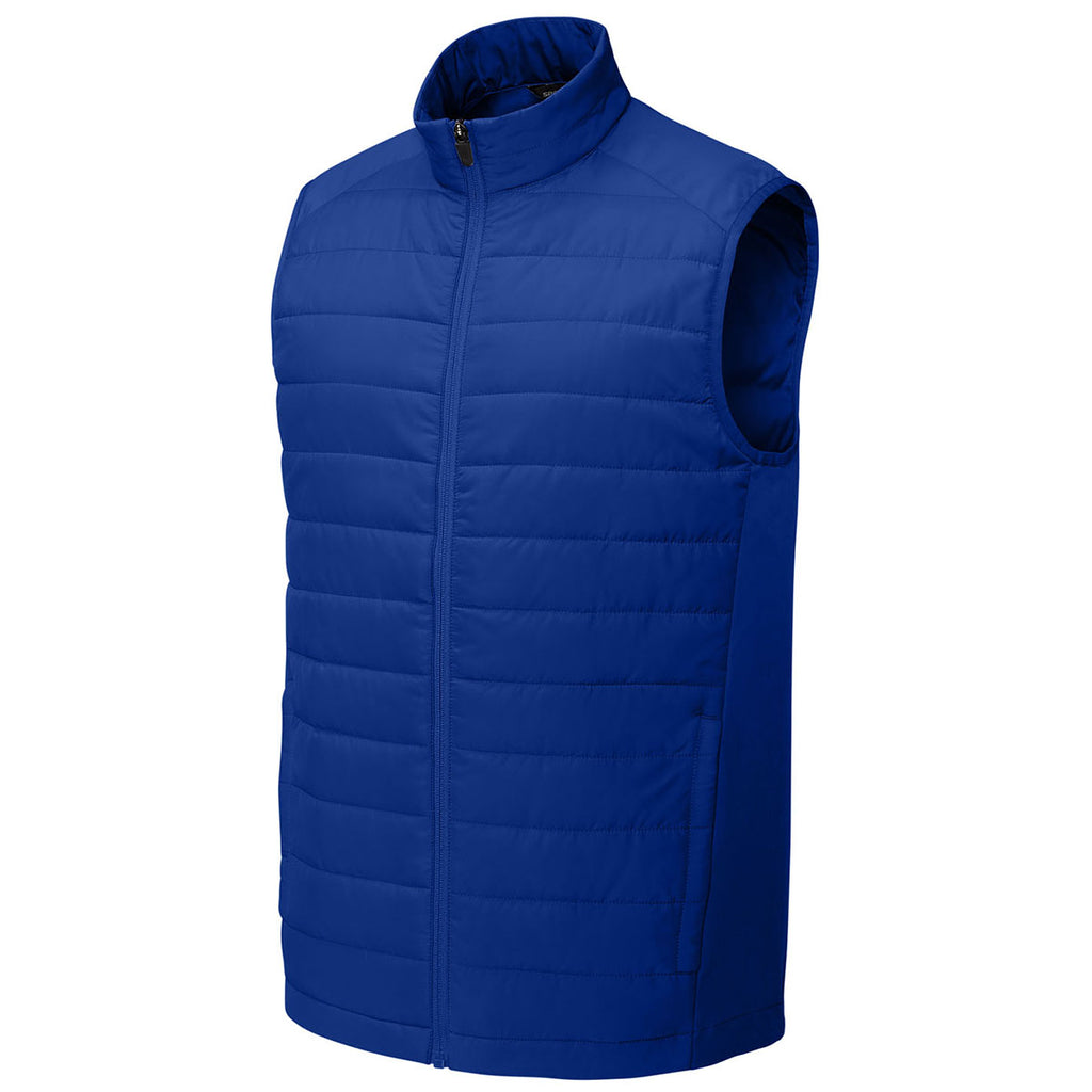 Custom embroidery gives the Sport-Tek Men's True Royal Teknical Hybrid Vest a polished corporate look. Light insulation and stretch panels deliver mobility and comfort in transitional weather. Ideal for branded uniforms or promotional programs, this vest highlights your company logo while offering a versatile piece that employees and clients will wear often.Corresponding Women's Style: Sport-Tek Women's True Royal Teknical Hybrid Vest